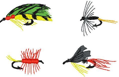 Fly Fishing Flies Embroidery Design Pes Dst Sew Jef File Formats Brother Bugs Hat Pocket Design Stitches