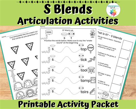 S Blends Articulation Worksheets Printable Speech Therapy Homework Packet Of Activities