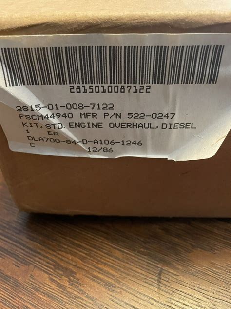 ONAN 522-0247 Repair Kit Diesel Generator Rebuild J Series M88A1 Pump Gasket