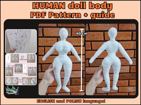New 40 cm Female / Feminine Plush Doll Body PDF Pattern With Detailed Sewing Guide / Instruction - Digital Template For Human Shape Doll DIY
