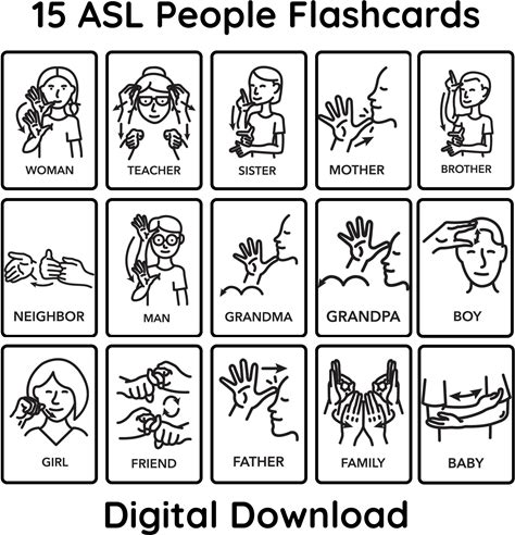 Basic Sign Language DIGITAL Pack. 16 Sign Language Cards, ASL American Sign Language