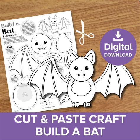 Build A Bat Cut & Paste Craft, Halloween Creature Coloring Kit, Night Life Nocturnal Animal Art Activity, Autumn Fall Spooky Ghoul Printable