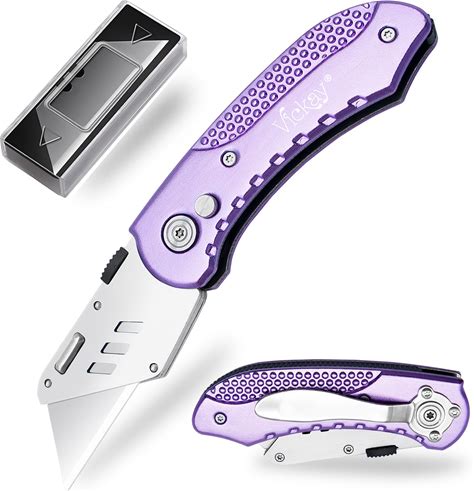 Vickay Folding Utility Knife, Box Cutter With 5 SK5 Quick Change Blades, Safety Axis Lock Design Razor Knife, Lightweight Aluminum Handle Belt Clip