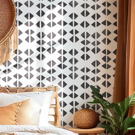 Boho Triangles Wall Stencil - Reusable Geometric Bohemian Furniture Craft Stencil For Painting By Dizzy Duck Designs