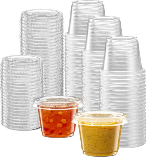 (1 Oz - 200 Sets) Clear Diposable Plastic Portion Cups With Lids, Small Mini Containers For Portion Controll, Jello Shots, Meal Prep, Sauce Cups,