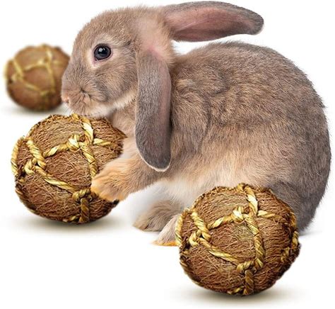 Sungrow Coconut Fiber Rabbit & Guinea Pigs Chew & Exercise Balls Teeth Grinding Treat, 3 Count
