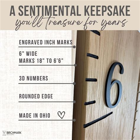 Natural Growth Chart Ruler 3D, Wooden Measuring Stick For Kids, Giant Wall Ruler, Height Board In Hickory With Natural Numbers