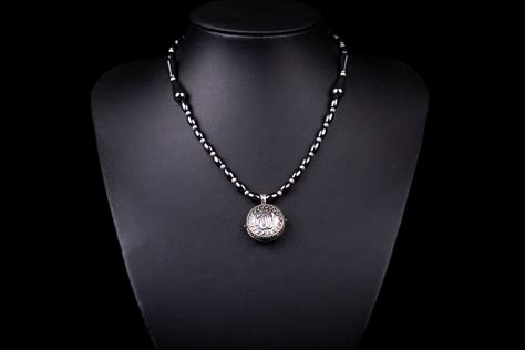 Allah Written Round Silver Locket Hematite Necklace, For Women, Necklace, 100% Handmade, 925 Silver
