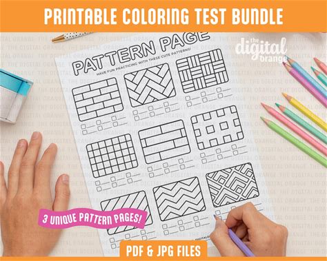 Pattern Printable Coloring Book Test Page Bundle | Marker Swatch Page | Texture Coloring Sheet | Digital Download | Practice Swatch Chart
