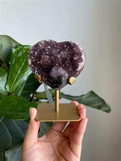 Special Amethyst Crystal Heart Carving With Custom Stand