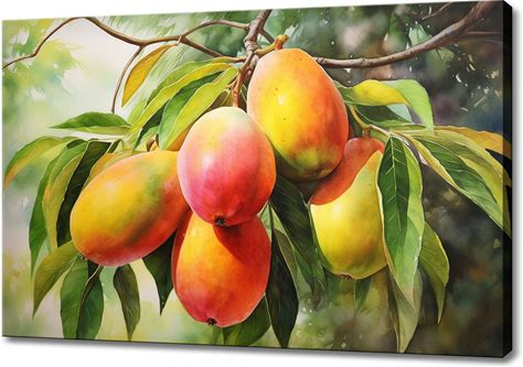 Mango Fruits Tree Watercolour Painting Canvas Print, Fruits Lover Gift, Kitchen Restaurant Wall Art Print, Colourful Fruits Wall Decor