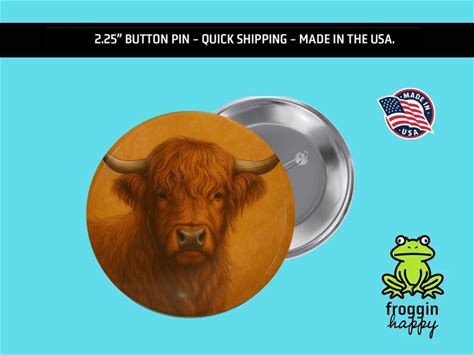 Highland Cow Pin, Rustic Farmhouse Button Badge, Cow Lover Gift, Western Animal Art, Made In USA, Cozy Country Decor Accessory