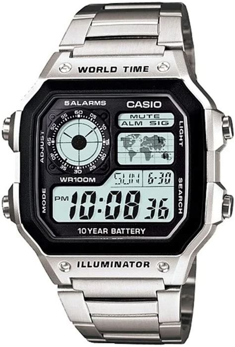 Casio Digital World Time wr100m Ae-1200Whd-1Avdf Ae-1200Whd-1Av Men's Watch