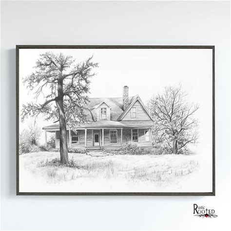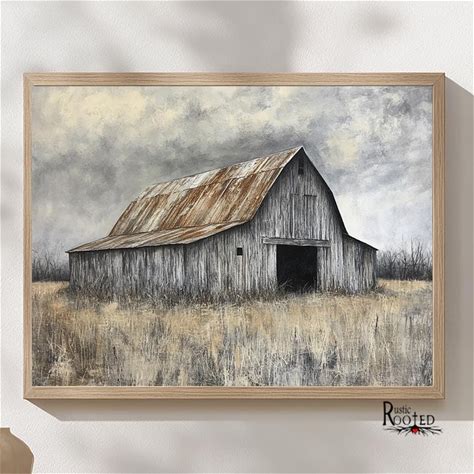Old Rustic Barn Artwork Rural Country Landscape Drawing Of Barn Modern Farmhouse Home Decor Framed Poster Canvas Print