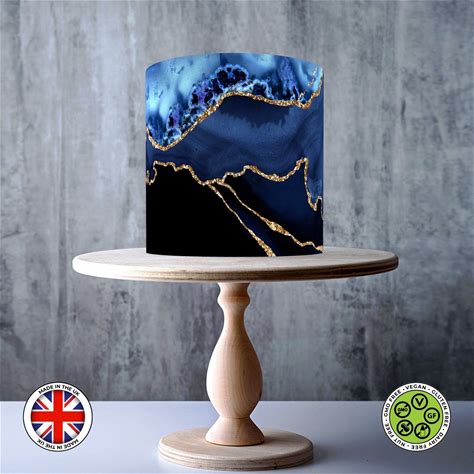 Dark Navy Agate Edible Cake Topper - Gold Geode Marble Effect Wrap - ICING Or WAFER