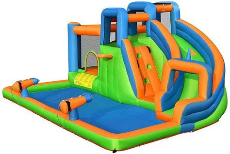 Inflatable Water Slide, 8 in 1 Outdoor Inflatable Water Park With Climbing, Basketball Rim, Splash Pool, Water Cannon, Blow Up Water Slides For Kids Backyard