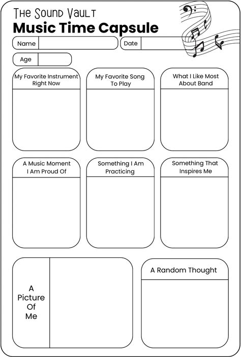 Music Time Capsule Printable | Musical Memory Worksheet | Fun Educational Music Activity