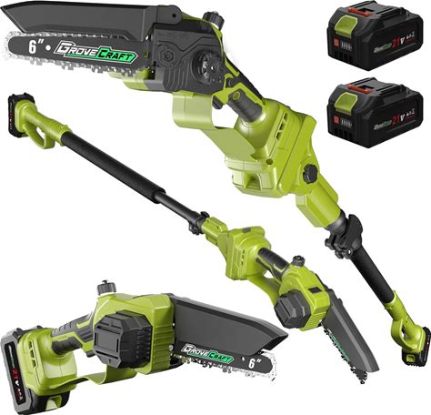 2-In-1 Electric Pole Saw, 6 Inch Mini Chainsaw Cordless Pole Saw With Extension Pole For Tree Trimming, 2 X 2000Mah Battery, Powered Pole Chain Saw, Tree Trimmer Limb Branch Cutter Pruner