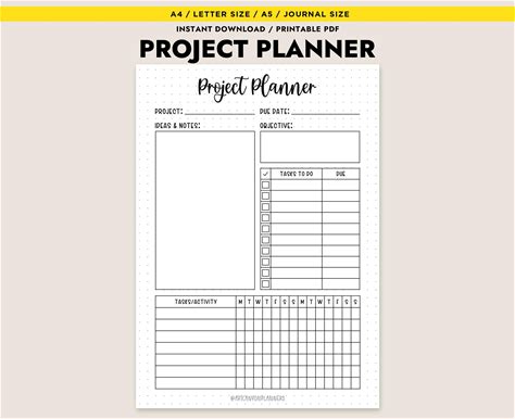 Project Planner Printable PDF Project Planning Template Daily Weekly Monthly Project Management Task Tracker Digital Download