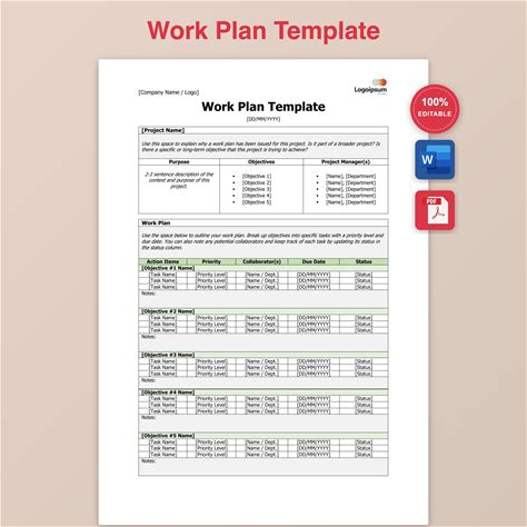 Work Plan Template Download, Project Planning Template Word PDF, Work Schedule Task Planning Form