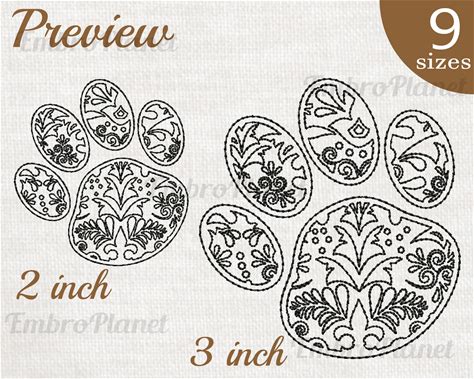 Paw Zentangle Embroidery Design - Animal Filled Stitch (Digital Download)